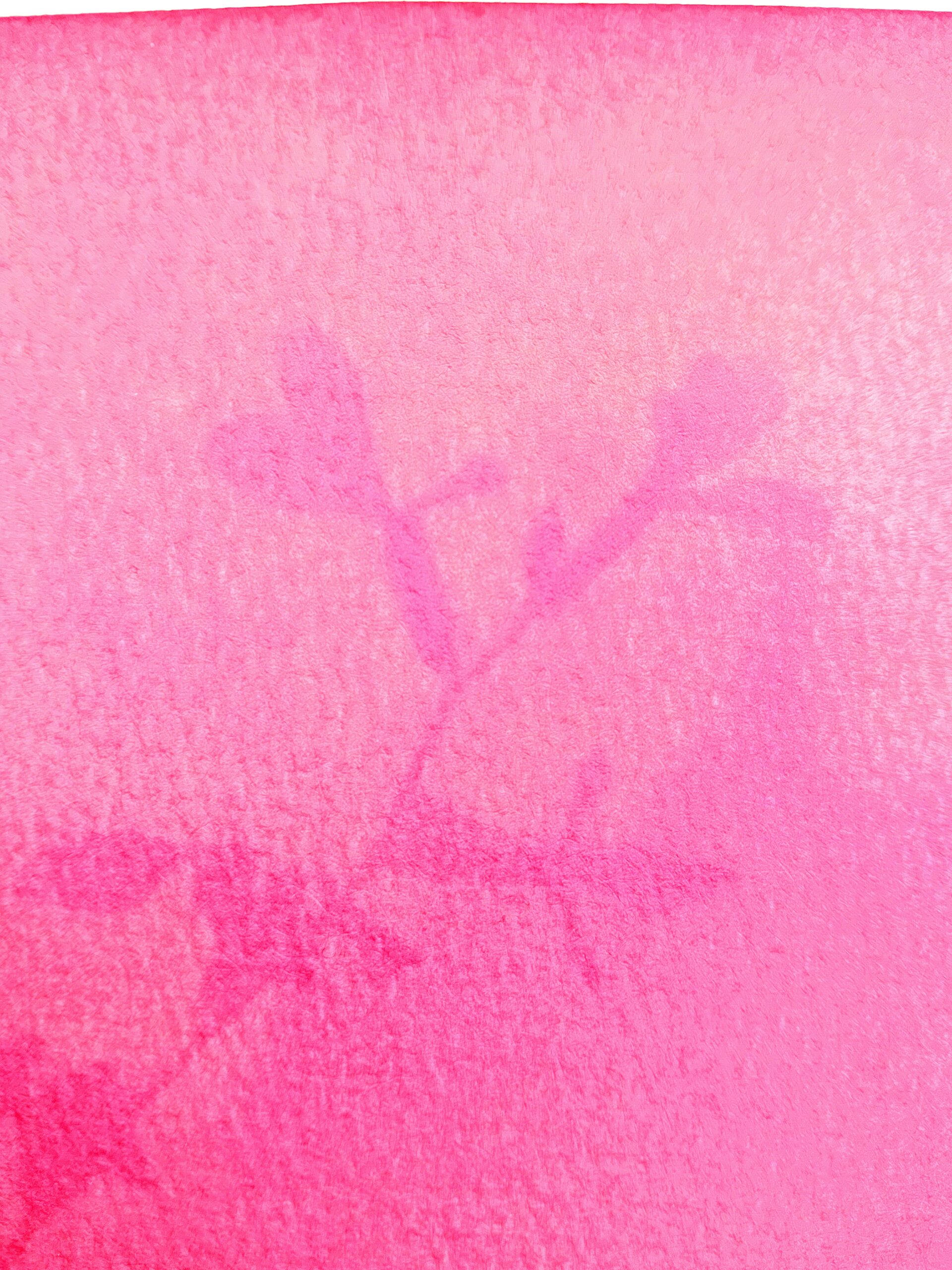 papier akwarelowy, kwiat zwartnicy (łac. Hippeastrum), sok z buraka, naświetlanie promieniami słonecznymi kilka dni, detal
